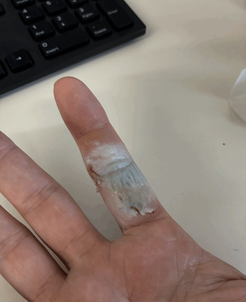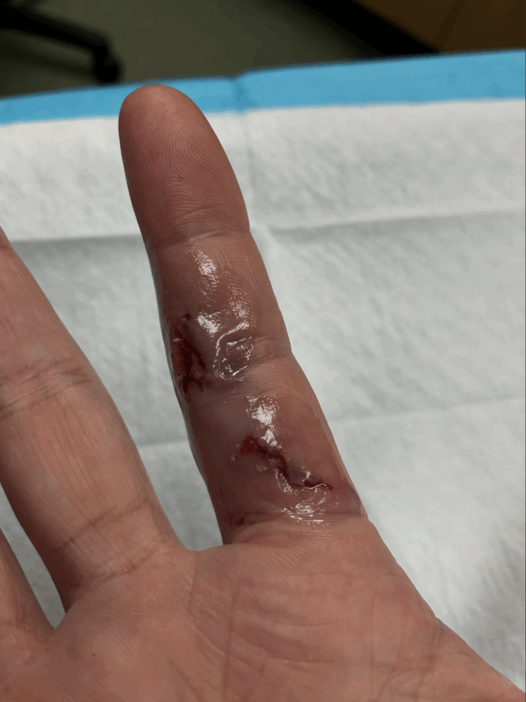 The people at urgent care were super nice and helpful. They confirmed it wasn’t broken, glued everything back together instead of stitches, which was fun for a change. At the end I thanked the PA for being so amazing and helpful and she said “No, thank you, I got into this work for the gross stuff, this was a really good one.” Helpful!